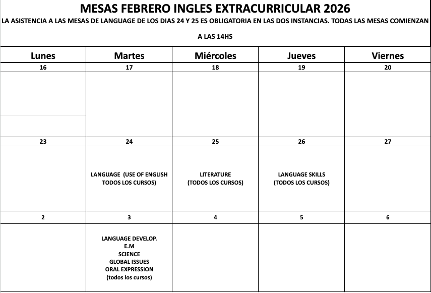 FEBRUARY BOARDS – 2026 – INGLÉS EXTRACURRICULAR Noticias Secundaria Mariana Ferreyra diciembre 26, 2025